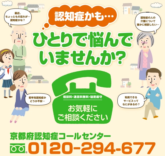京都府支部では、京都府からの委託を受けて「京都府認知症コールセンター」を実施しています。