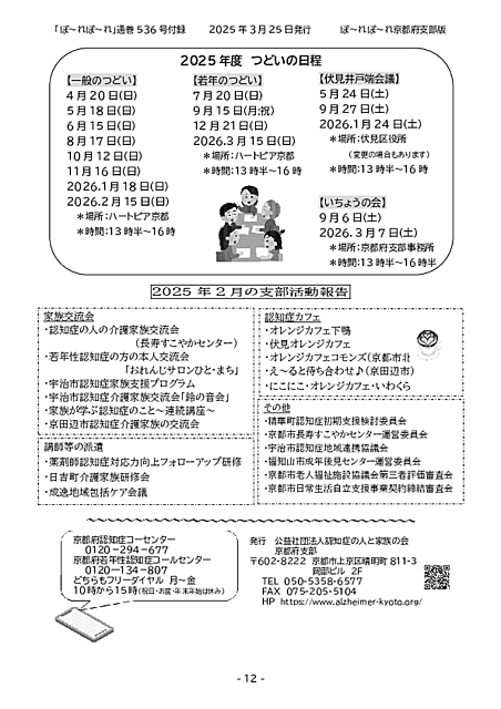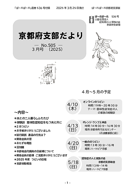認知症の人と家族の会 京都府支部は 認知症をもっていても安心して暮らせる社会をめざします。