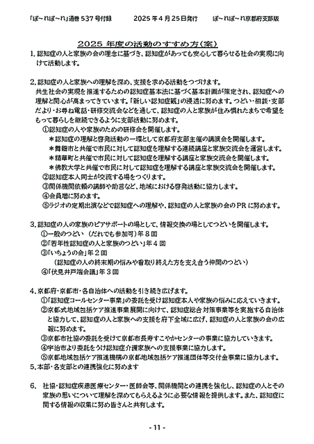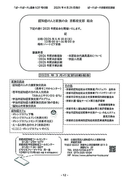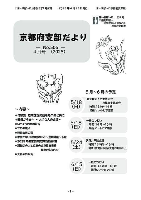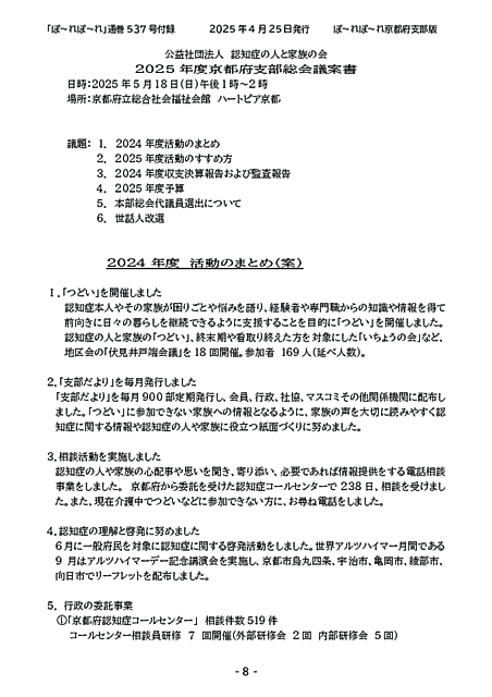 *認知症の人と家族の会 京都府支部総会のお知らせ