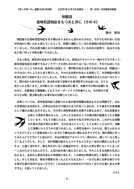 *体験談 意味性認知症をもつ夫と共に