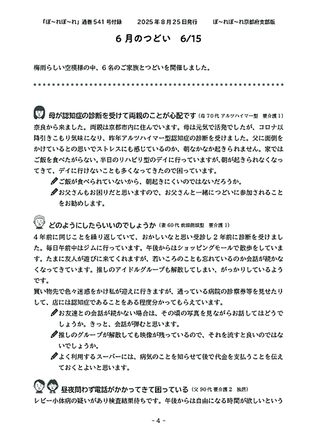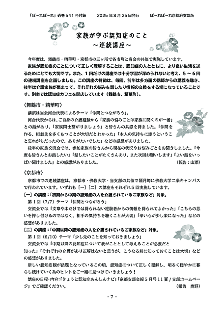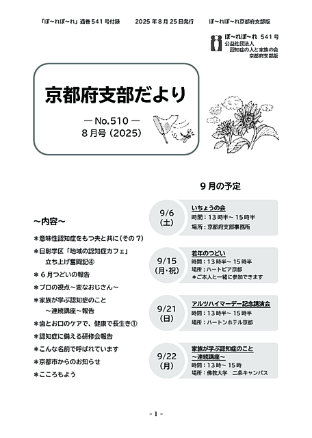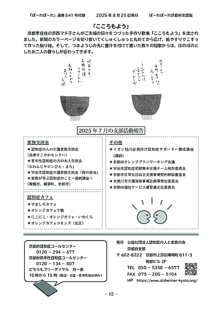 認知症の人と家族の会 京都府支部は 認知症をもっていても安心して暮らせる社会をめざします。