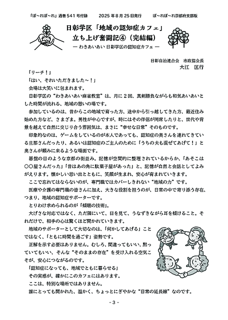 *日彰学区「地域の認知症カフェ」立ち上げ奮闘記④